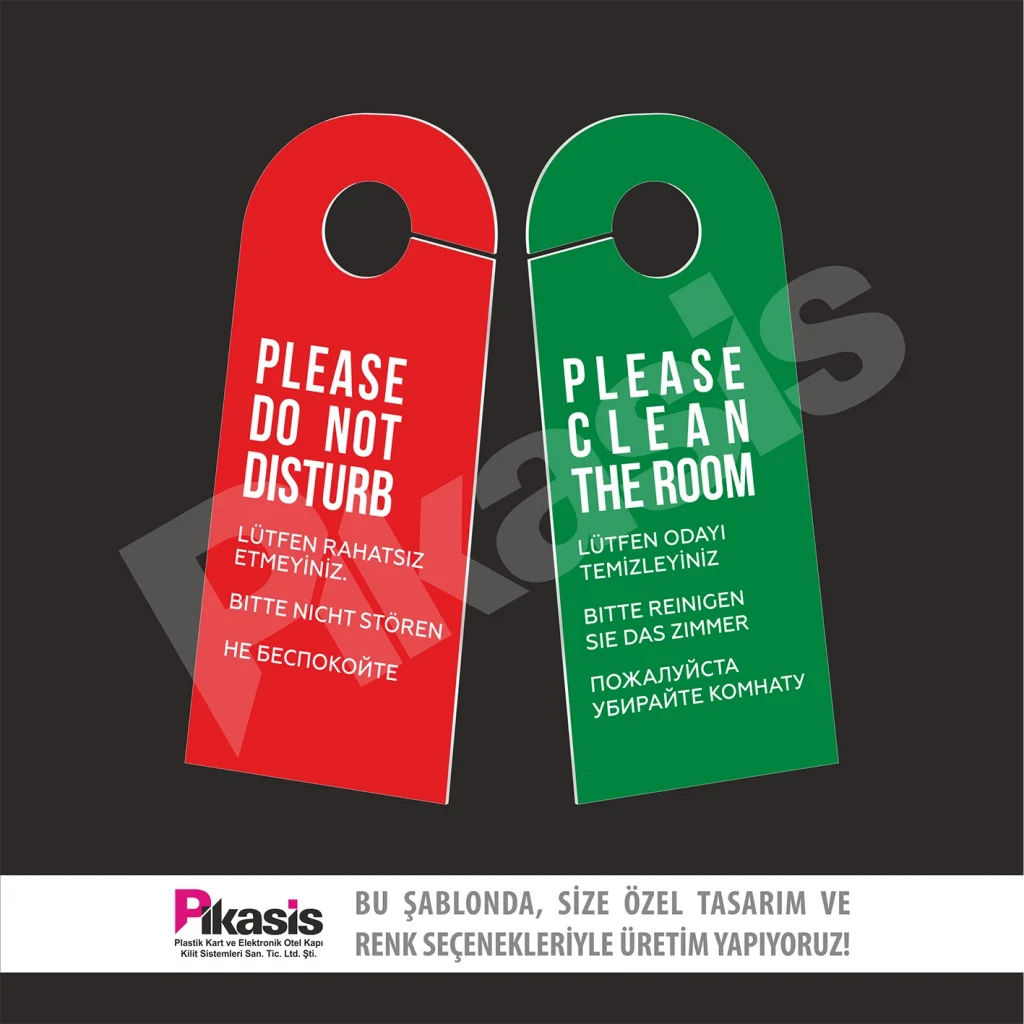 Do not disturb kartı, karton ve pvc den imal edilir. Otelde sürekli kullanım ve el temasından dolayı yıpranır.