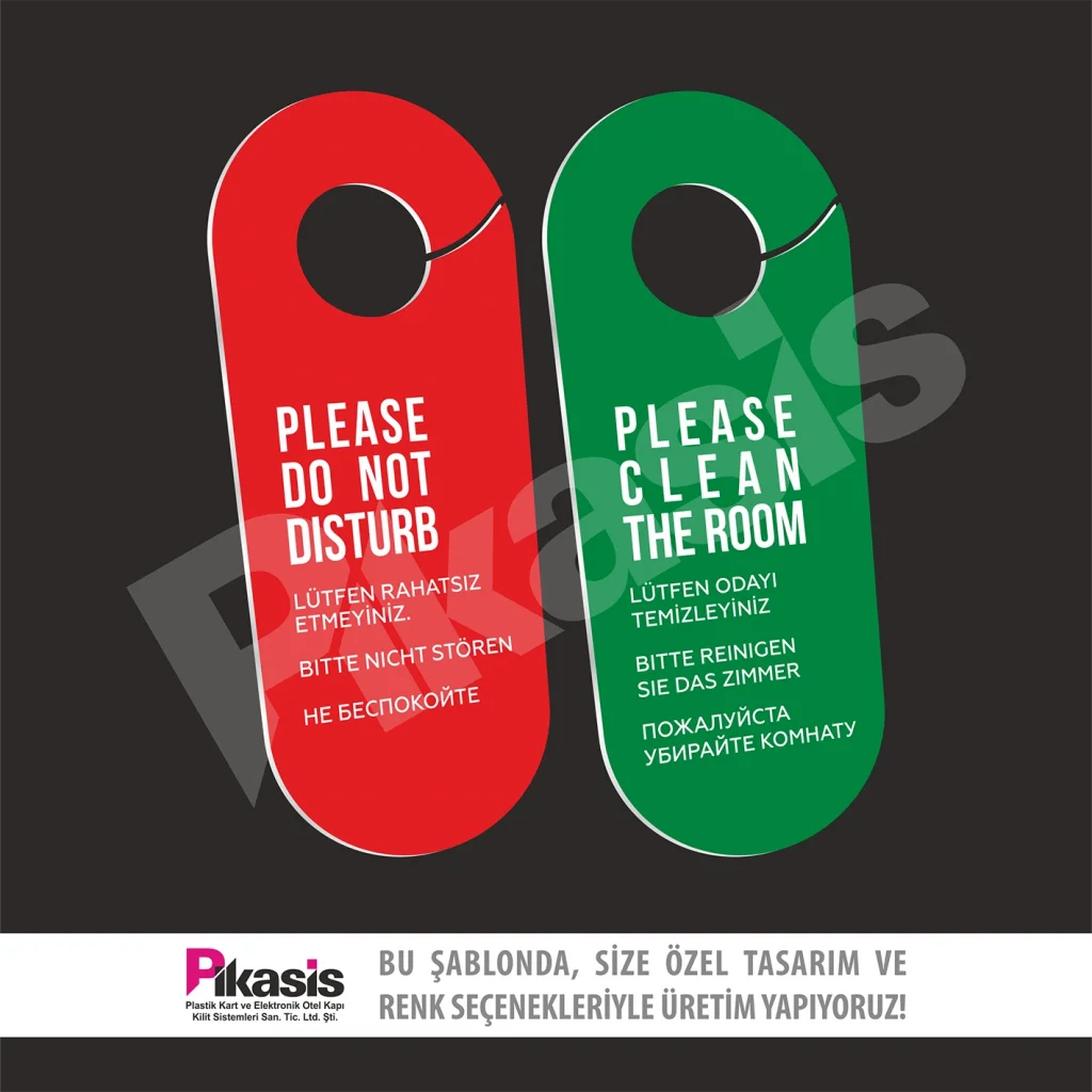 Do not disturb kartı, karton ve pvc den imal edilir. Otelde sürekli kullanım ve el temasından dolayı yıpranır.