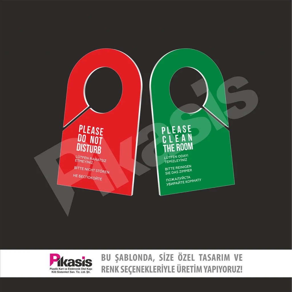 Do not disturb kartı, karton ve pvc den imal edilir. Otelde sürekli kullanım ve el temasından dolayı yıpranır.