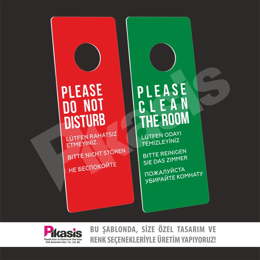 Do not disturb kartı, karton ve pvc den imal edilir. Otelde sürekli kullanım ve el temasından dolayı yıpranır.