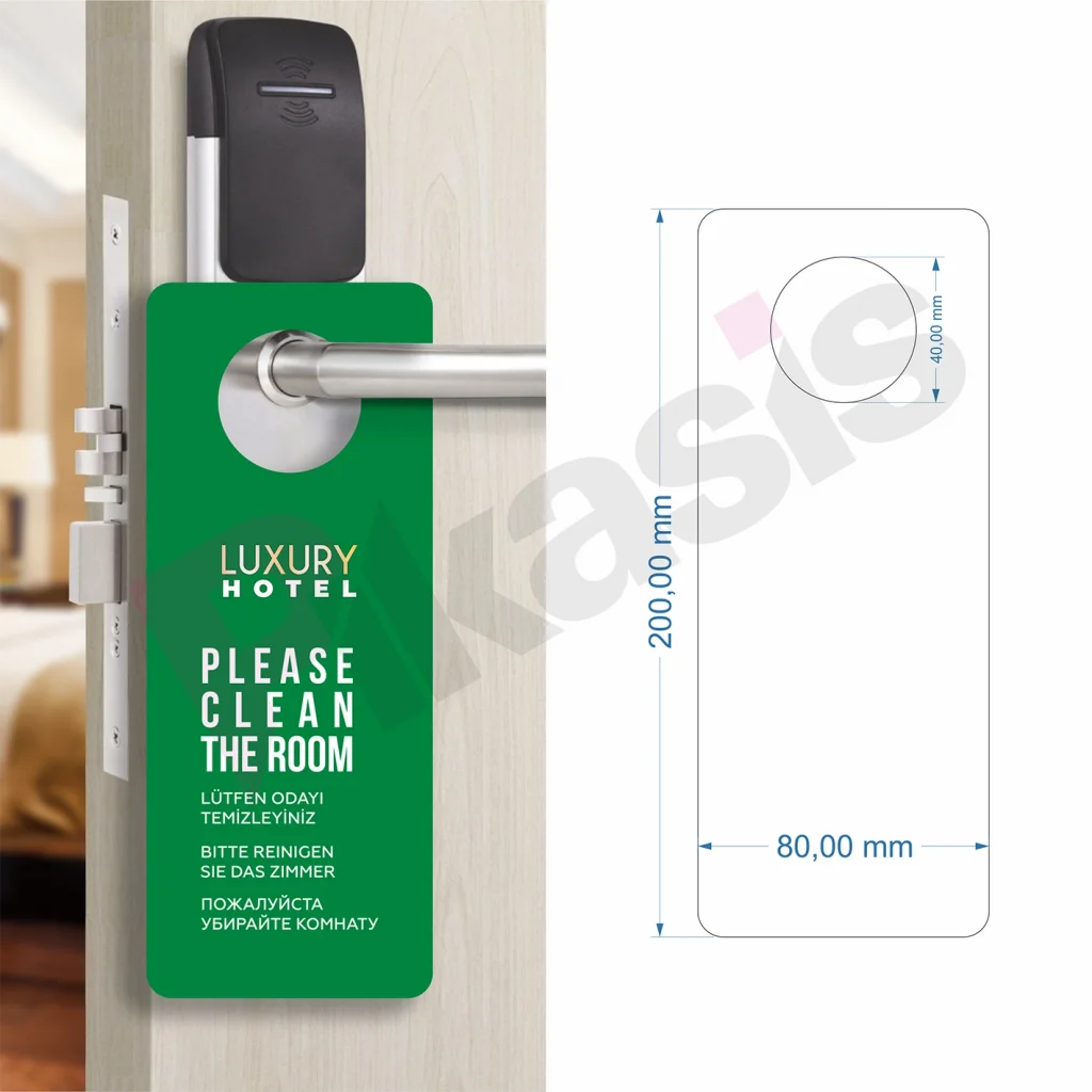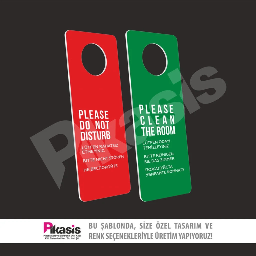 Do not disturb kartı, karton ve pvc den imal edilir. Otelde sürekli kullanım ve el temasından dolayı yıpranır.