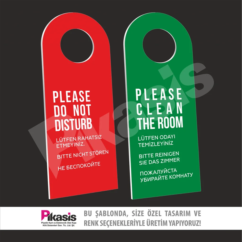 Do not disturb kartı, karton ve pvc den imal edilir. Otelde sürekli kullanım ve el temasından dolayı yıpranır.