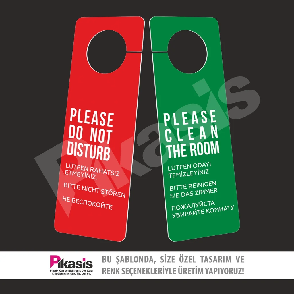Do not disturb kartı, karton ve pvc den imal edilir. Otelde sürekli kullanım ve el temasından dolayı yıpranır.