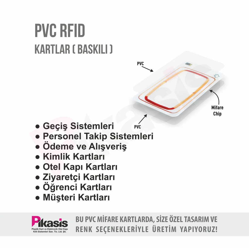 13.56MHz RFID Kart; erişim kontrolü, katılım yönetimi, otel anahtar sistemleri, otobüs ödeme sistemleri, otopark yönetimi, kimlik doğrulaması ve benzeri uygulamalar için kullanıma uygundur.